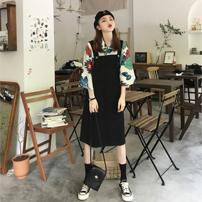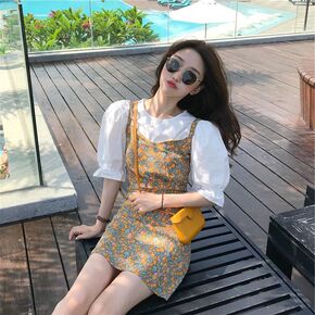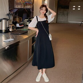 大码微胖女减龄吊带长裙显瘦背带裙+皱褶泡泡甜美百搭...