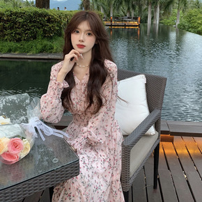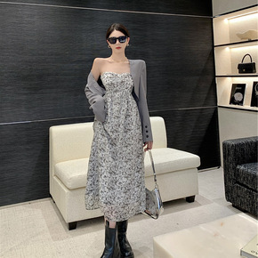 大码法式复古减龄碎花女春秋新款微胖辣妹收腰显瘦抹胸...