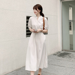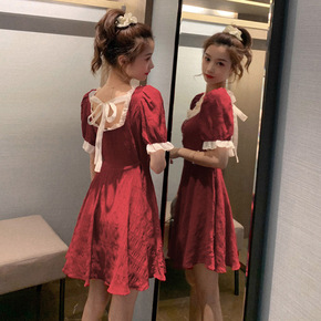 可盐可甜法式复古泡泡袖牛仔连衣裙女夏小个子桔梗初恋...