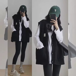 大码女装2021新款早秋冬港风复古网红针织马甲显瘦...