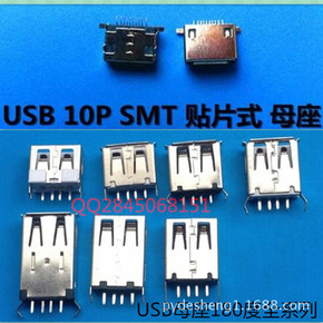 供应USB充电口10.0短体母座6.5厚山字型胶芯...