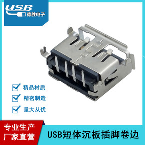 厂家直营USB AF短体沉板母座 USB连接器接口...