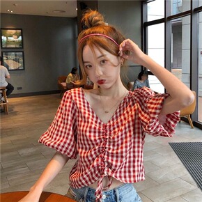 法式甜美心机衬衫女设计感小众衬衣春季新款性感短款上...