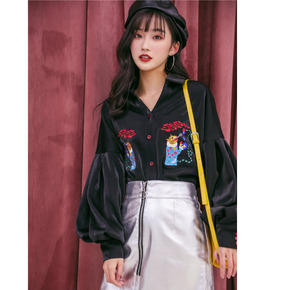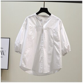 小心机设计感灯笼袖立领白色衬衫女棉质衬衣夏韩版宽松...