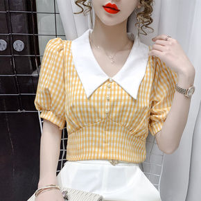 夏季短袖衬衫女2021新款气质洋气设计感小众短款小...