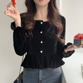 秋季2022新款法式上衣设计感小众心机V领珍珠扣长...
