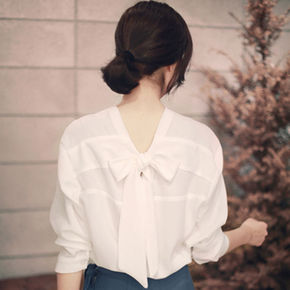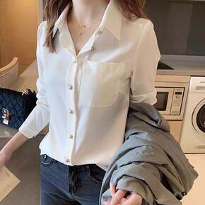白色雪纺衬衫女士夏装新款2019洋气很仙的衬衣设计...