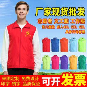 志愿者服务公益马甲印制印图印LOGO红色工作服服装...