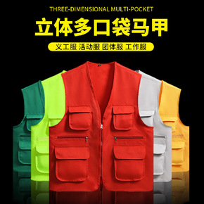 多袋红色义工宣传服马甲空白印logo志愿者工作制服...