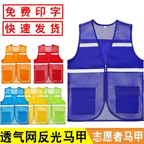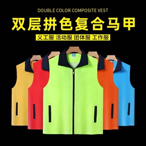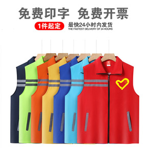 拼色反光马甲印logo字新款志愿者马夹背心工作服印...