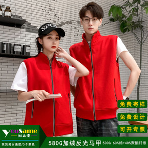 高档加绒加厚马甲秋冬志愿者马甲印图反光夜间工作服刺...