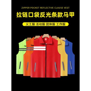 志愿者反光拉链口马甲印制广告衫男女款党员义工公益活...