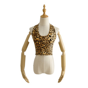 820-20款 韩版修身款U领性感豹纹挂脖露脐吊带...