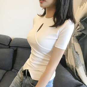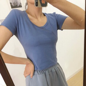 夏季2021新款时髦内搭圆领U领短袖短款t恤上衣女...