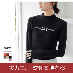 【珍羽绒】性感中领针织打底衫女 秋季长袖半高领新款...