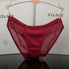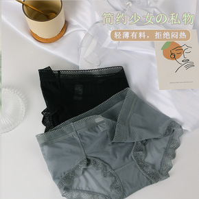 性感蕾丝边 磨砂+网纱拼接 薄款女士内裤 透气棉档...