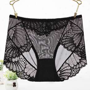 女士时尚蕾丝内裤透明大码胖mm性感抗菌中腰收腹提臀...