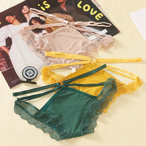 欧美外贸原单蕾丝少女三角裤 性感女士网纱低腰舒适内...