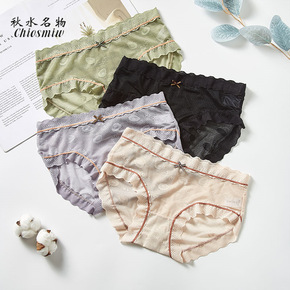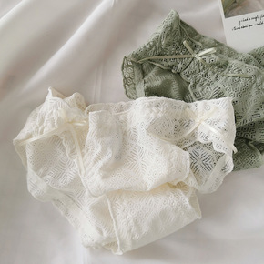 性感低腰蕾丝半透明内裤日系甜美蝴蝶结裤头底裆棉质少...