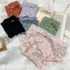 新款蕾丝性感超柔网纱半透明内裤女低腰纯棉裆无痕蕾丝...