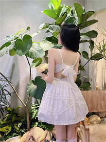 实拍v领小清新露背度假裙小吊带连衣裙短款女装修身显...