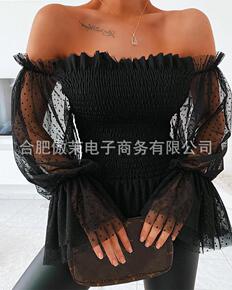 速卖通Wish亚马逊跨境欧美性感一字肩荷叶边收腰雪...