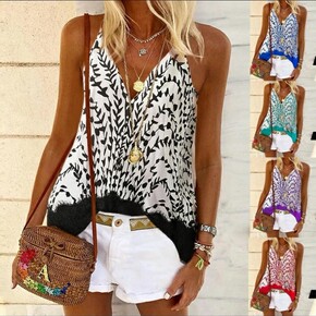 ins潮流豹纹印花性感露背交叉绑带修身露脐内搭吊带...