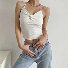 2022夏季新款挂脖交叉露锁骨吊带背心女性感露背显...