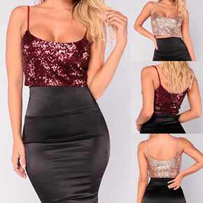 2021亚马逊金属亮片性感吊带小背心 欧美新款抹胸...