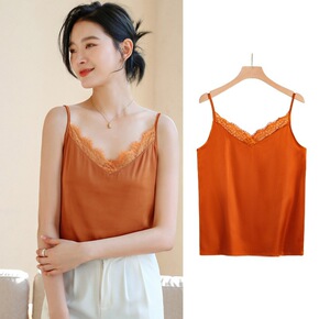 蕾丝吊带纯欲性感 碎花缎面新款V领夏季小吊带背心女...