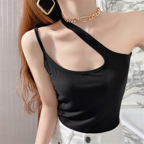 夏季新款亚马逊时尚撞色性感后背镂空系带不规则吊带款...