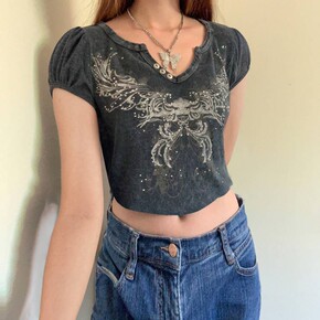 2022跨境时尚欧美潮流夏天修身型印花字母图案系花...