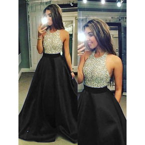 跨境新款黑色金丝绒性感深V晚礼服露背优雅聚会派对百...