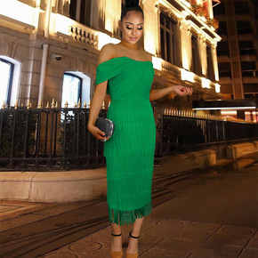 时尚性感女装抹胸高腰流苏裙宴会晚礼服连衣裙女 pa...