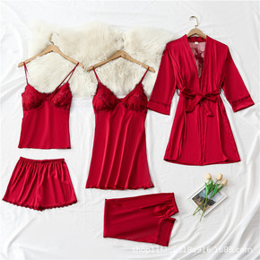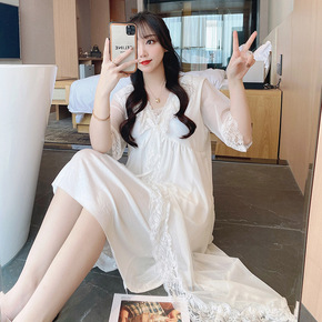 P8088春夏新款蕾丝女式吊带睡裙两件套薄款睡衣套...
