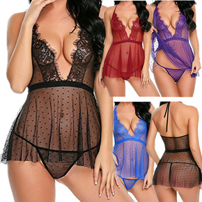 大码180斤诱惑挑逗性感内衣侧开叉蕾丝吊带睡裙女透...