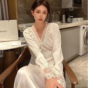 性感睡裙女两件套春秋新款冰丝吊带蕾丝睡衣中长款夏季...
