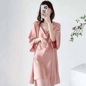 2022新款夏季性感冰丝舒适睡衣女性感V领开叉吊带...
