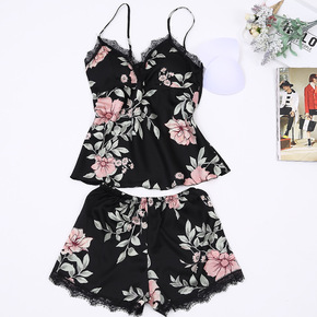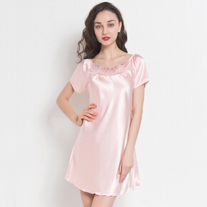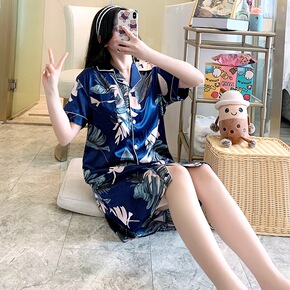 丝绸夏季睡衣性感花边圆领仿真丝绸缎面大码春秋家居短...