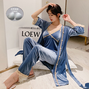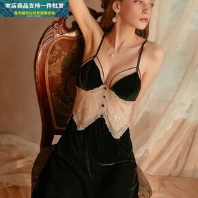 蕾丝睡裙女性感睡衣金丝绒吊带裙秋诱惑纯欲内衣火辣冬...