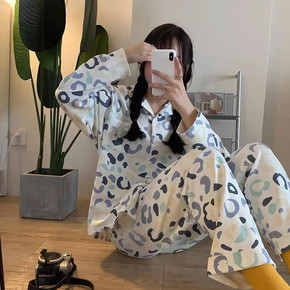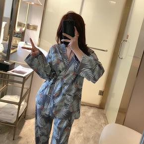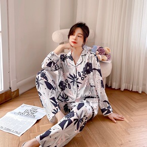 新款网红简约自然仿真丝睡衣女长袖套装可外穿开衫家居...