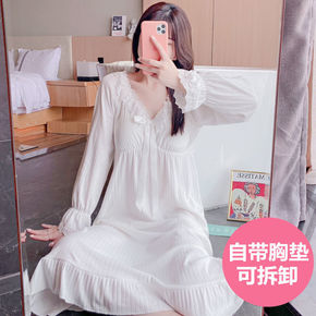 睡衣女春秋季纯棉高档性感纯欲风长袖睡裙蕾丝长款学生...