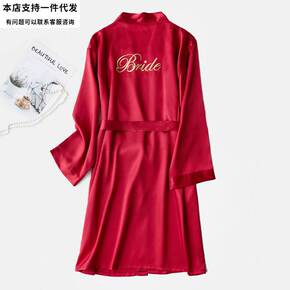 睡袍新娘伴娘团晨袍结婚婚礼闺蜜趴九分袖刺绣睡衣性感...