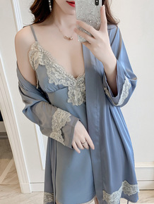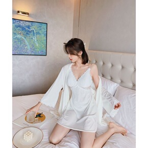 睡衣女夏季薄款性感冰丝吊带睡裙睡袍两件套装和服丝绸...