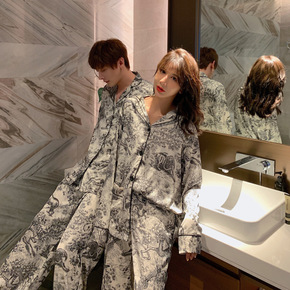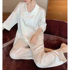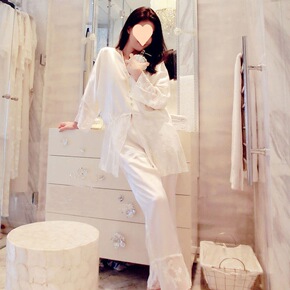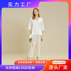 春秋真丝睡衣套装女夏性感两件套分体长袖桑蚕丝睡袍家...