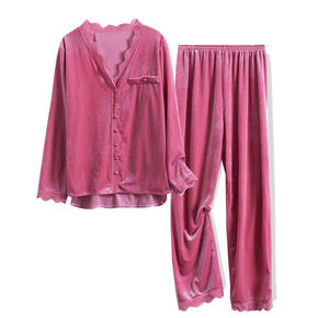 3033# 睡衣女秋冬韩版金丝绒公主风蕾丝性感长袖...