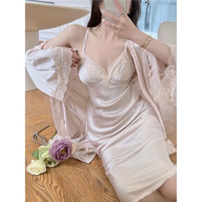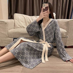 外贸新款长袖睡袍女春秋季甜美ins性感舒适家居服酒...