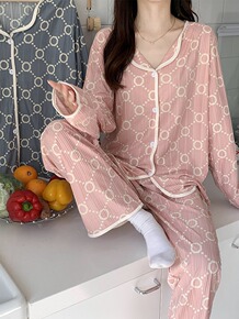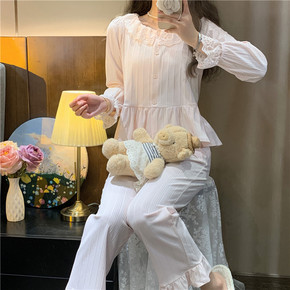 薄款春季季长袖服两件套长袖睡衣家居服法式长款学生女...