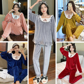 金丝绒睡衣女秋冬性感长袖长裤两件套装宽松显瘦家居服...