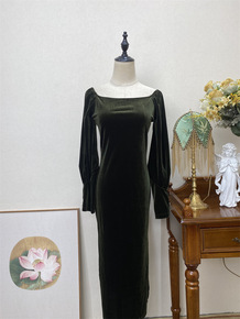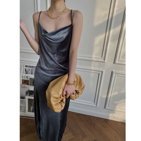 司南 高级感荡领丝绒吊带连衣裙女新款轻熟性感打底长...